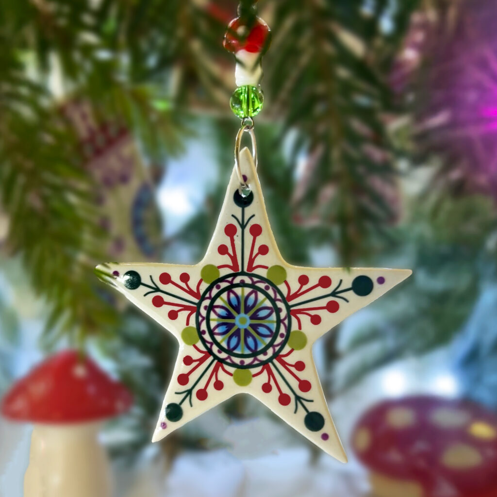 Multi-colour Christmas Star 2025 decoration. Handmade in the UK