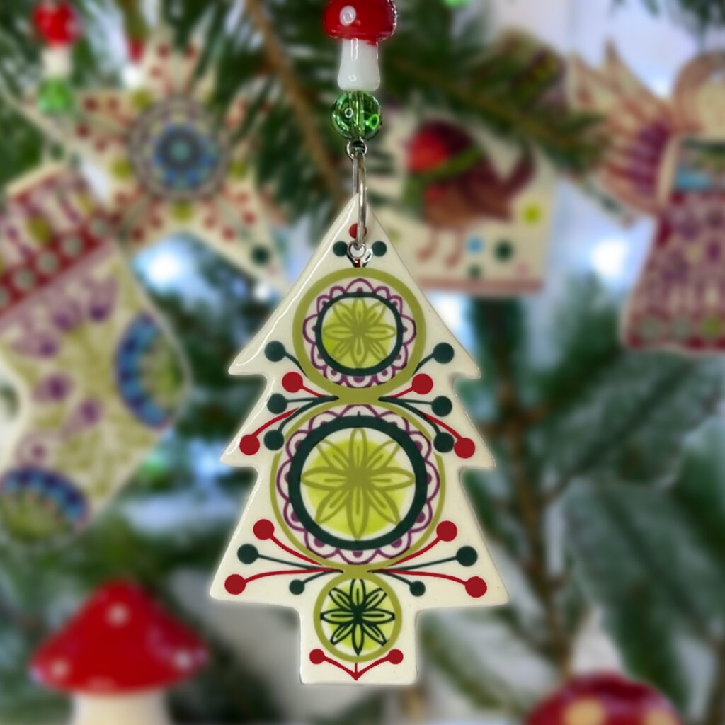 Multi-colour Christmas Tree 2025 decoration. Handmade in the UK