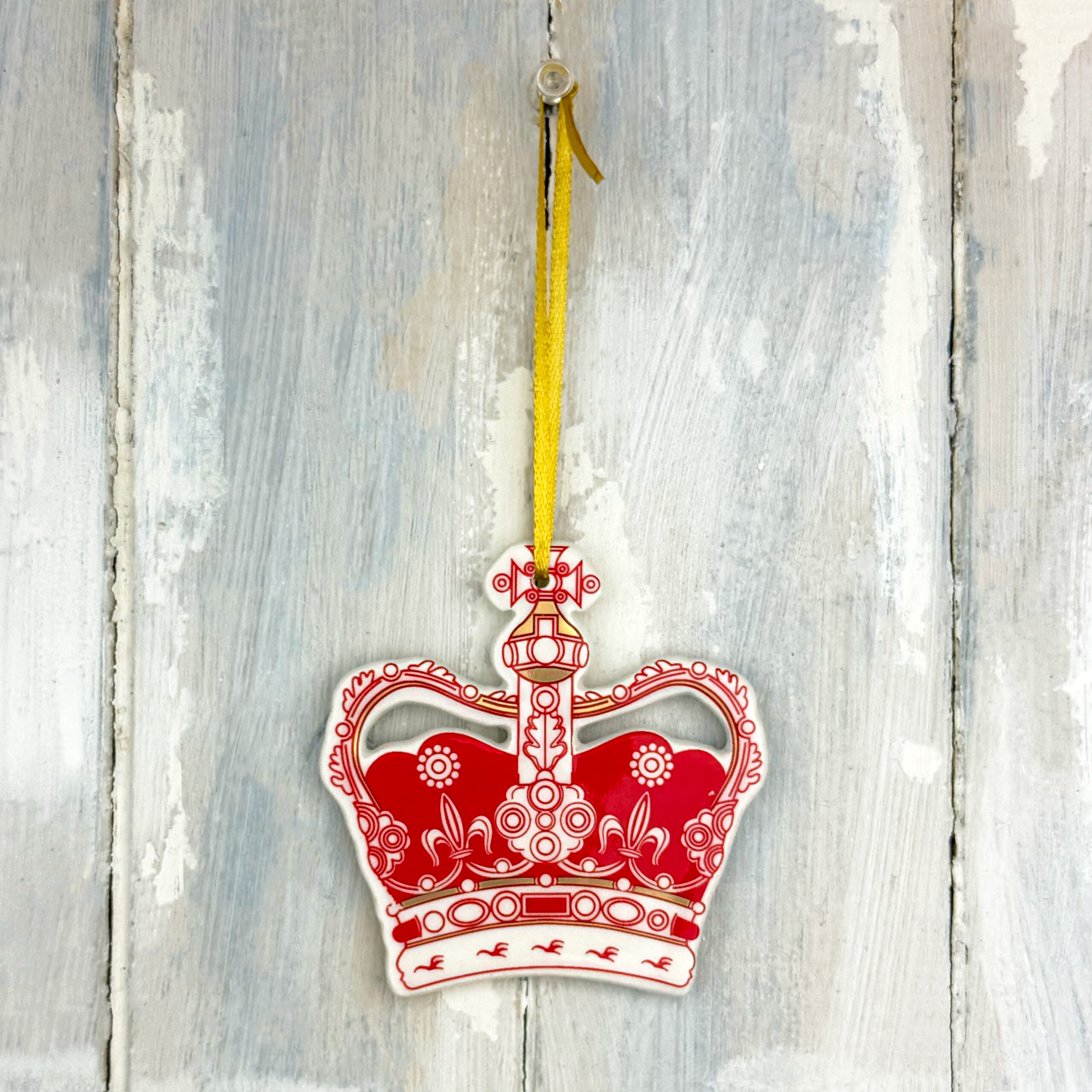 Red Edinburgh Castle Crown hanging decoration. Handmade in the UK